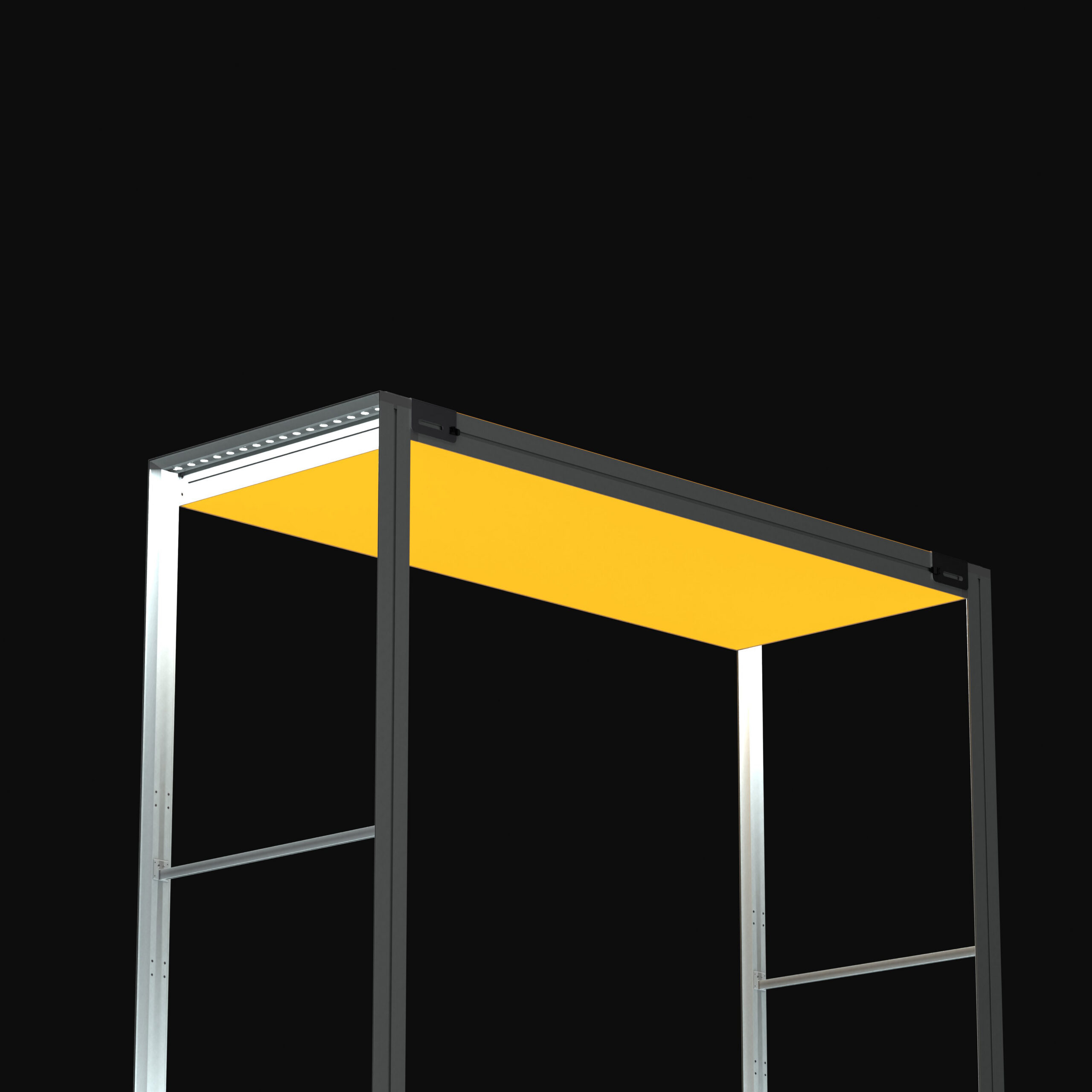 Maak jouw stand compleet met het LED Flexframe Brightbox Plafond – een opvallend verlicht plafond dat zorgt voor extra merkbeleving van bovenaf.